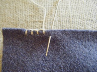 – Fäst tråden genom att sy ett par stygn över varandra.