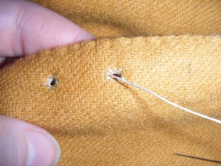 – sy langettstygn runt hålet, två varv – tänk på att använda rätt sorts tråd.