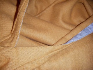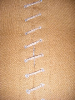 Kanten där du ska sy snörhål kan gärna förstärkas på insidan med en smal remsa linne eller siden.