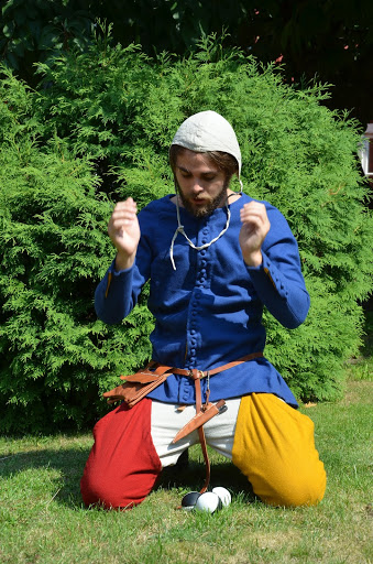 På så gott som varje medeltidsmarknad finns det både gycklare och musiker – under medeltiden kallade lekare – som bidrar till stämningen på ett trevligt sätt. Eftersom konsten antagligen är det primärt intressanta och kläderna kanske bara är en av flera olika scenkostymer, så riktar sig detta inlägg framför allt till dig som är marknadsunderhållare, för att du ska få en enkel guide till hur dessa personer kunde klä sig på medeltiden. Som vanligt är introduktionen och avsnitten om mäns och kanske kvinnorskläder också bra att läsa, eftersom detta inlägg bygger på dem.