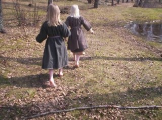 Barfotaflickor i urvuxna kjortlar. Lite is ligger kvar i