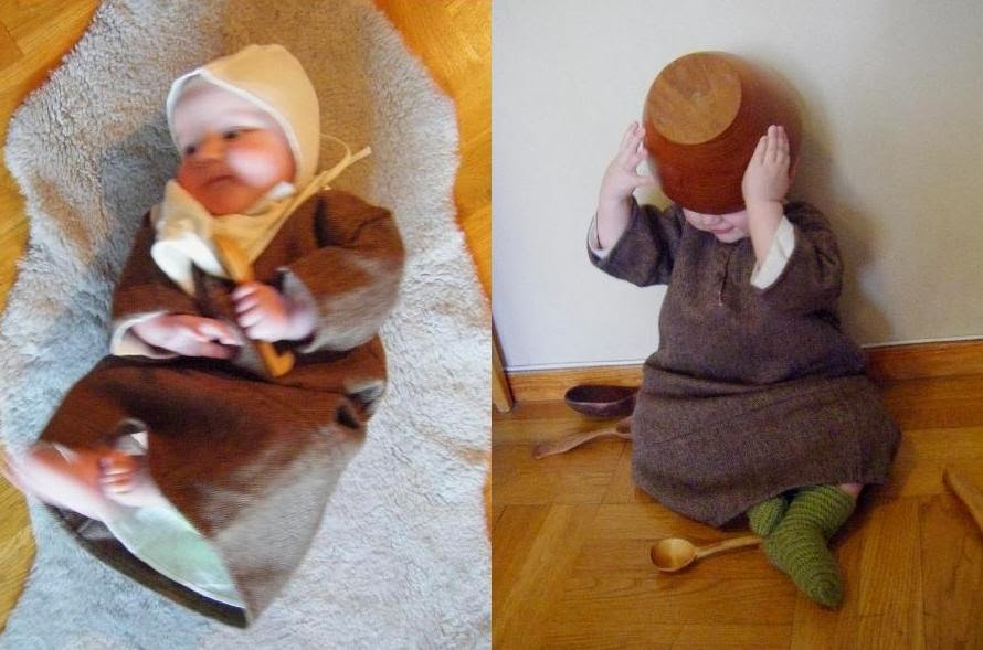 Först kan det vara bra att få en uppfattning om hur medeltidens barn klädde sig på riktigt, innan man börjar fuska; läs om barnskläder här om du inte redan gjort det. Det här inlägget är framför allt anpassat till småbarnskläder (från bebisar och upp till 5-7 år); större barn kan i de flesta fall klä sig i mindre versioner av vuxenkläder utan problem.
