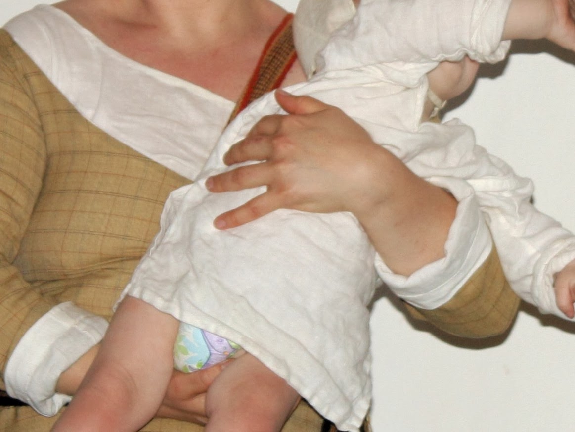 Oavsett om du använder engångsblöjor eller moderna tygblöjor så ser de inte historiskt korrekta ut. Risken för att ditt barns blöja kommer att synas är stor, då särkar och koltar som sagt har en besvärlig tendens att kasa upp på burna barn och småbarn i övrigt inte har en tanke på att deras sätt att sitta, slå kullerbyttor, springa och klättra kan visa upp blöjbaken för omgivningen.