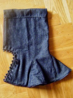 Tyget i hosorna kommer ursprungligen från en gammal yllekjol köpt på second hand.