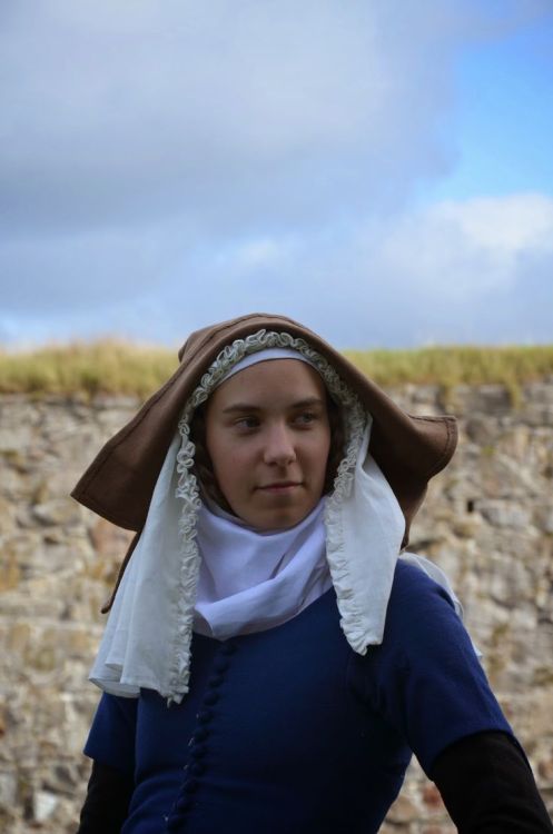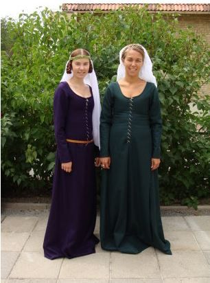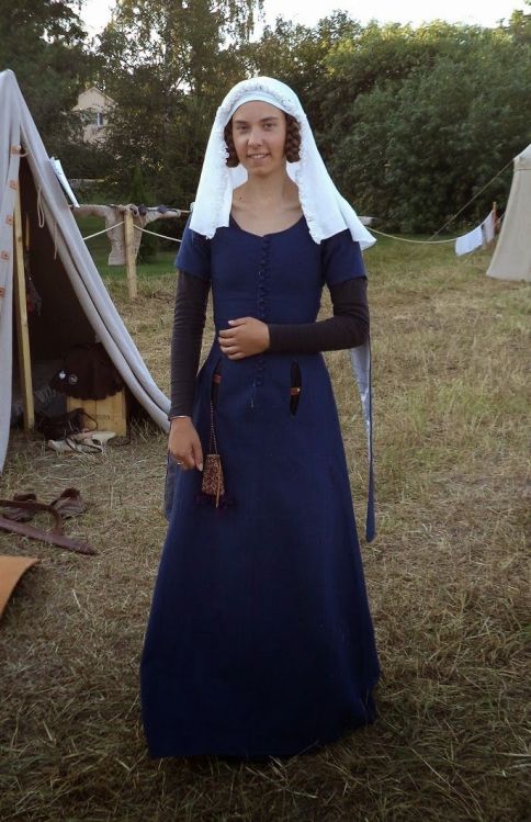 Hur såg dina första ”medeltidskläder” ut? Mina allra första lajvkläder var inte mycket att hänga i granen. Två lager linne så som Sophias Ateljé förespråkar. På ett höstlajv med minusgrader är det inte särskilt härligt måste jag säga. Den dräkten har jag inga bilder på – istället får ni en bild på mitt första försök till en källbaserad dräkt, tänkt att höra till åren 1280-1310. Så här i efterhand så är det inte mycket som stämmer, men då var jag väldigt nöjd! Den andra bilden jag delar med mig av är från förmiddagen innan jag och mamma åkte ner till Ystad. Lite bättre, men fortfarande inte helt bra.