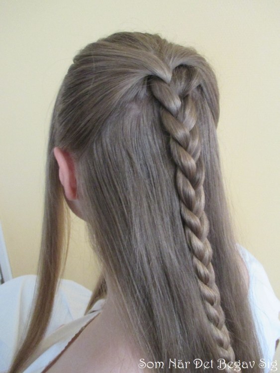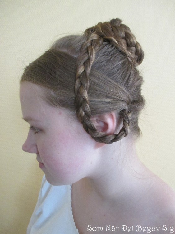 Min lillasyster som är modell i det här inlägget har ett fantastiskt tjockt, och vid fototillfället även långt hår som lämpar sig utmärkt för ändamålet. De av oss som inte har samma tur kan komplettera med flätor av löshår. Tyvärr missade jag att ta bilder av några steg, men jag har försökt förklara dem så gott jag kunde.