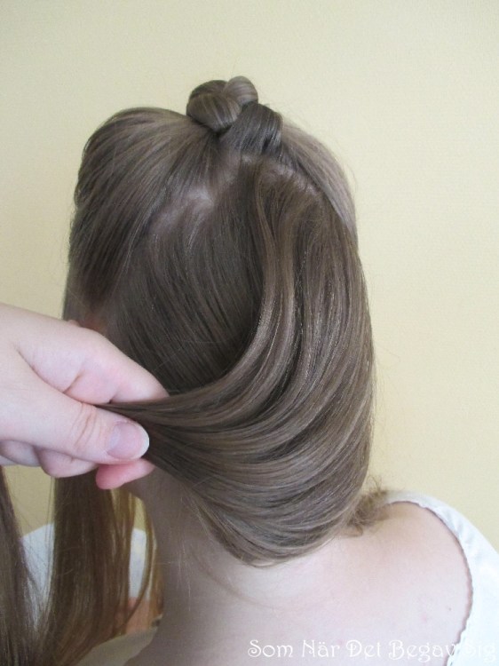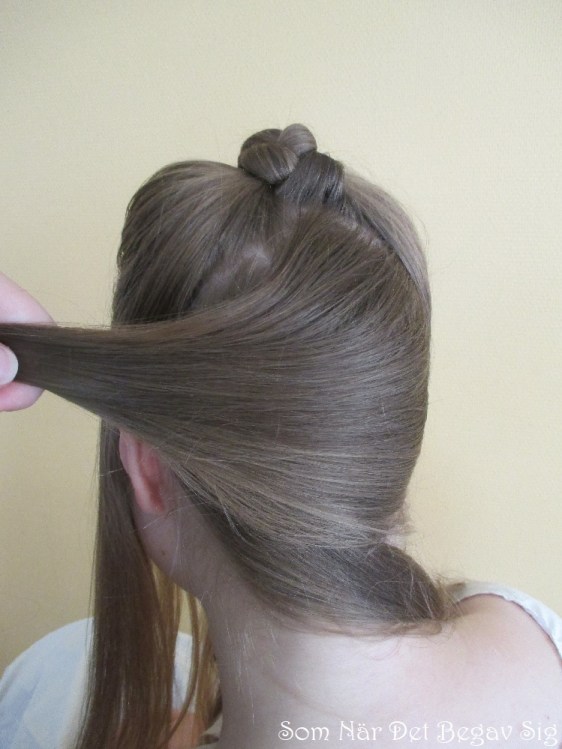 Håll undan flätan uppe på hjässan och bena resten av håret ända ner i nacken.