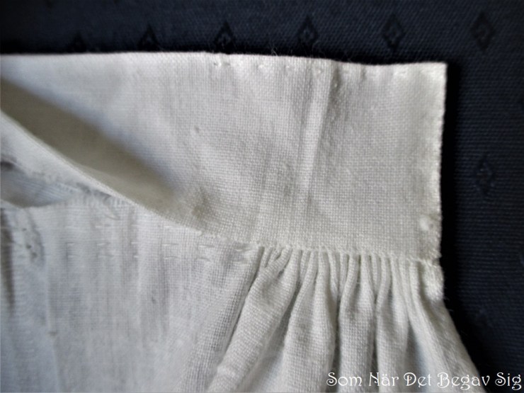 Stroked gathers were used on a number of different garments: shifts and shirts (both for folk costumes and more fashionable ones), children’s clothing, petticoats, folk costume skirts, sleeves on dresses…. It’s a technique that creates a neater and less bulky finishing than machine gathering, so even if it takes a bit more time, the result is well worth it.