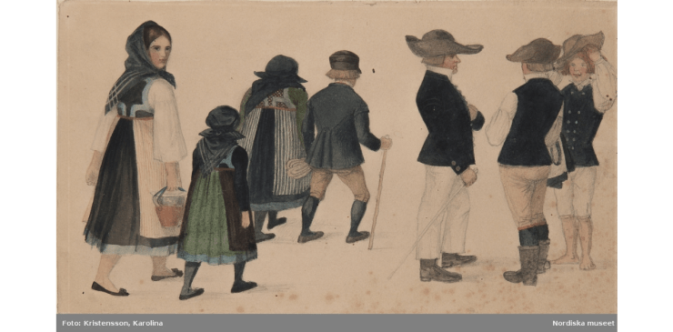 Till skillnad från de som tillhörde samhällets elegantare cirklar kunde allmogen till vardags ofta gå barfota, eller med grova skor utan strumpor, särskilt under de varmare månaderna. Även de brukade dock sätta på sig strumpor när de skulle gå till kyrkan eller på fest. Strumpor var helt enkelt ett väsentligt plagg för att anses vara korrekt klädd under 1800-talet.