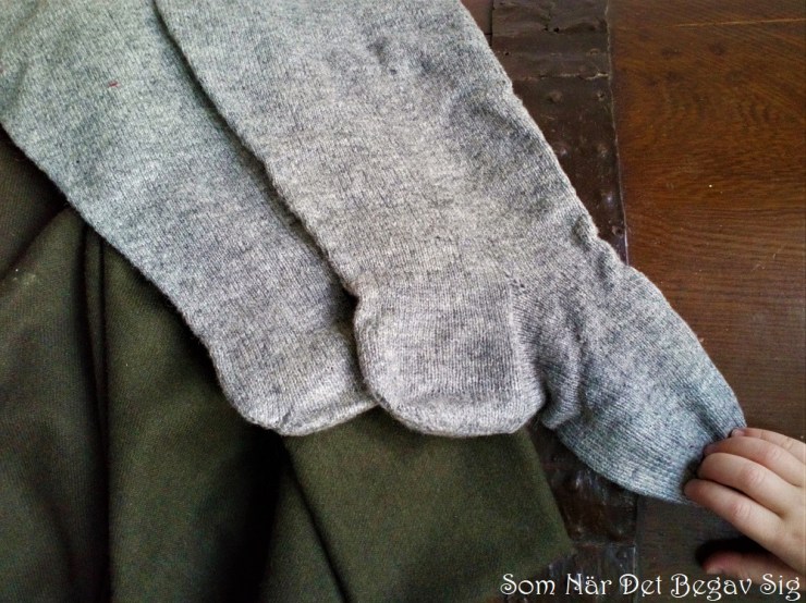 Hösten och vintern är en bra tid att investera i over-kneestrumpor från de vanliga klädbutikerna, om du inte vill lägga ner tid på att tillverka dina egna strumpor eller pengar på att köpa reproduktioner. Satsa på strumpor i naturmaterial, eller med så låg procent syntet du kan hitta. Moderna strumpor är givetvis inte historiskt korrekta (de detaljerna får vi gå in på en annan gång), men de kommer att se mycket bättre ut än vad nakna fötter i skorna gör. Långa kjolar kan dölja mycket, men inte huruvida du bär strumpor eller ej. De är en liten detalj som höjer helhetsintrycket.