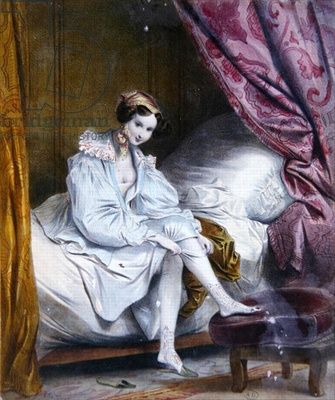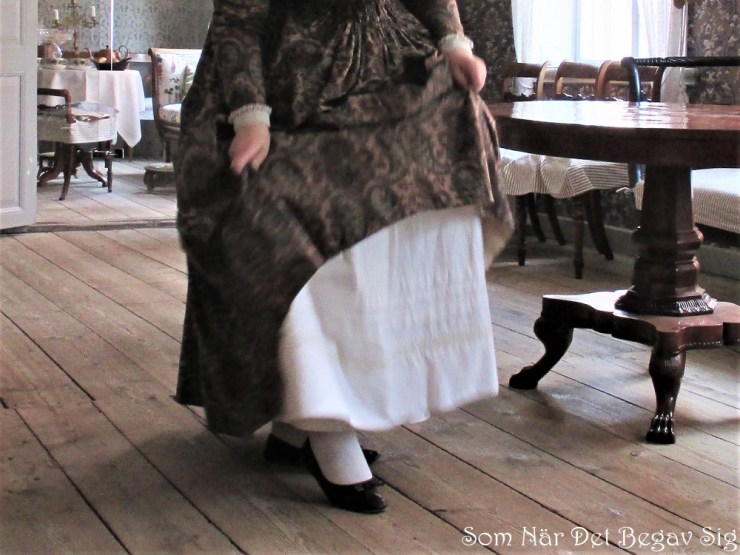 Vita strumpor till skor i ballerinamodell – en stapelvara i damers garderober under första halva av 1800-talet.