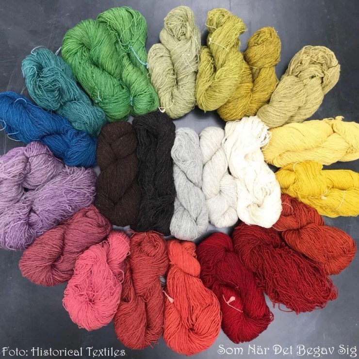Many are under the impression that wool clothes are warm and itchy, but that is almost entirely a matter of quality of the wool. Often, wool is associated with thick winter clothing, but there are wool fabrics so thin and fine they are sheer, or soft enough it can be worn comfortably against the skin. Wool also isolate against warmth as well as cold, will keep you warm even if it gets wet, and don’t catch fire easily (and when it does, it burns slowly), and often require no other cleaning than being aired outside on a damp day, possibly with brushing muddy hems. It’s a good idea to buy 100% wool, as man made fibres counteracts the natural properties of the wool: man-made fibres will make the clothes warmer and sweatier as they don’t breathe, and if you’re unlucky it can melt onto the skin if you get too close to a fire or candle. Nowadays there are several shops round the world that sell proper wool cloth to re-enactors and living historians. You can read more about wool cloth here (still to be translated).