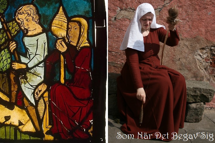 It’s important to understand that the Middle Ages actually existed. Your great-great-great-something-grandmother lived then. She and her husband, their families and neighbours were real people who were born, lived – ate, drank, worked, feasted, laughed and cried, rejoiced and mourned, experienced pleasure and pain – married, had children, grew old and died. They had their culture; a unique mix of national and local history, politics, superstitions and religion, just as we have ours today, and it influenced their whole lives. If you want to dress medieval you can’t just put on any old thing that’s not typically 21stcentury and believe it’ll be correct. The clothes medieval people wore were influenced by fashion, religion, class, economy, marital status, technology and available materials, to mention a few factors. There is right or wrong, since the clothing and their context existed. By dressing ourselves in the kind of clothes our ancestors wore we can come closer to our own past, in a fun way.