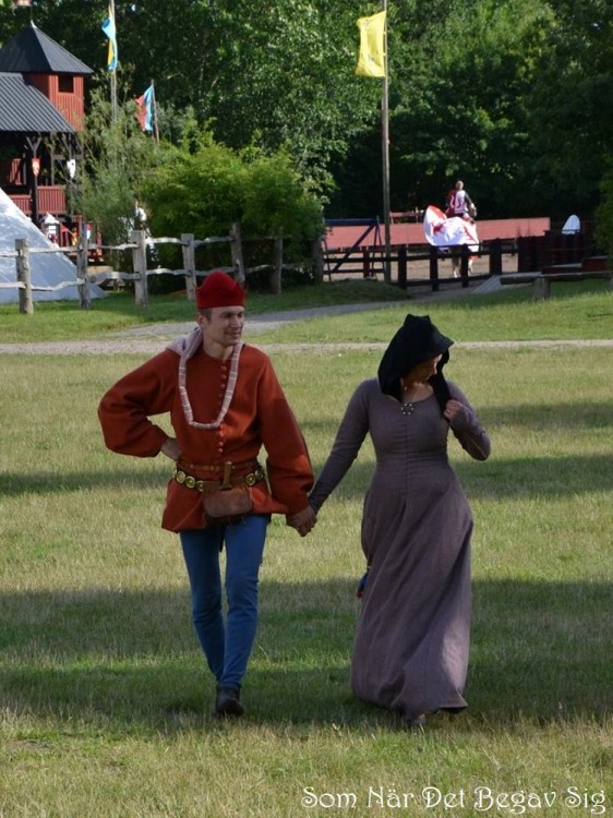 In Sweden the Middle Ages span about 500 years, from the 1050’s to the 1520’s – the exact period may differ where you come from. Fashion changed a lot during that time. If you don’t have a specific time in mind already, look at period pictures in books and on the web, and when you find something you fancy, find out when and where it’s from. Fashion didn’t just change over time, it also differed between regions: the further between countries (geographically, culturally, politically), the greater the differences in fashion. Narrow down time and space as much as you can, ex. Sweden 1364-1415, which is the time the people in this post (all involved in Albrechts Bössor) represents. Staying within the time span of a person’s adult life, or entire lifetime if you want to push it, is pretty good as it provides natural boundaries that are realistic.