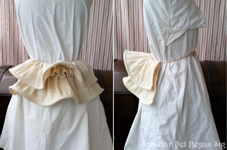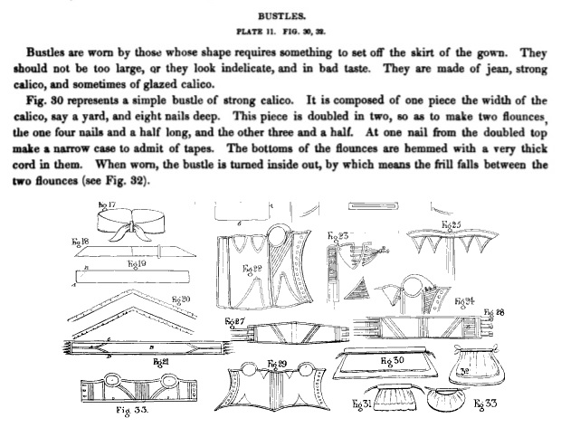 In the splendid book The Workwoman’s Guide from 1838 there are descriptions o a few different bustles to wear under the petticoats to add a bit more “oomph” to the back of skirts – perfect if you do 1830’s/40’s.